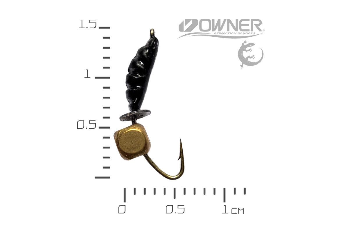 Мормишка зимова Криветка Black Salamandra XS з підвіскою кубик латунь - унікальна вольфрамова зимова мормишка, виготовлена на оригінальному японському гачку Owner 53157 STRAW HOOK для лову без насадки.